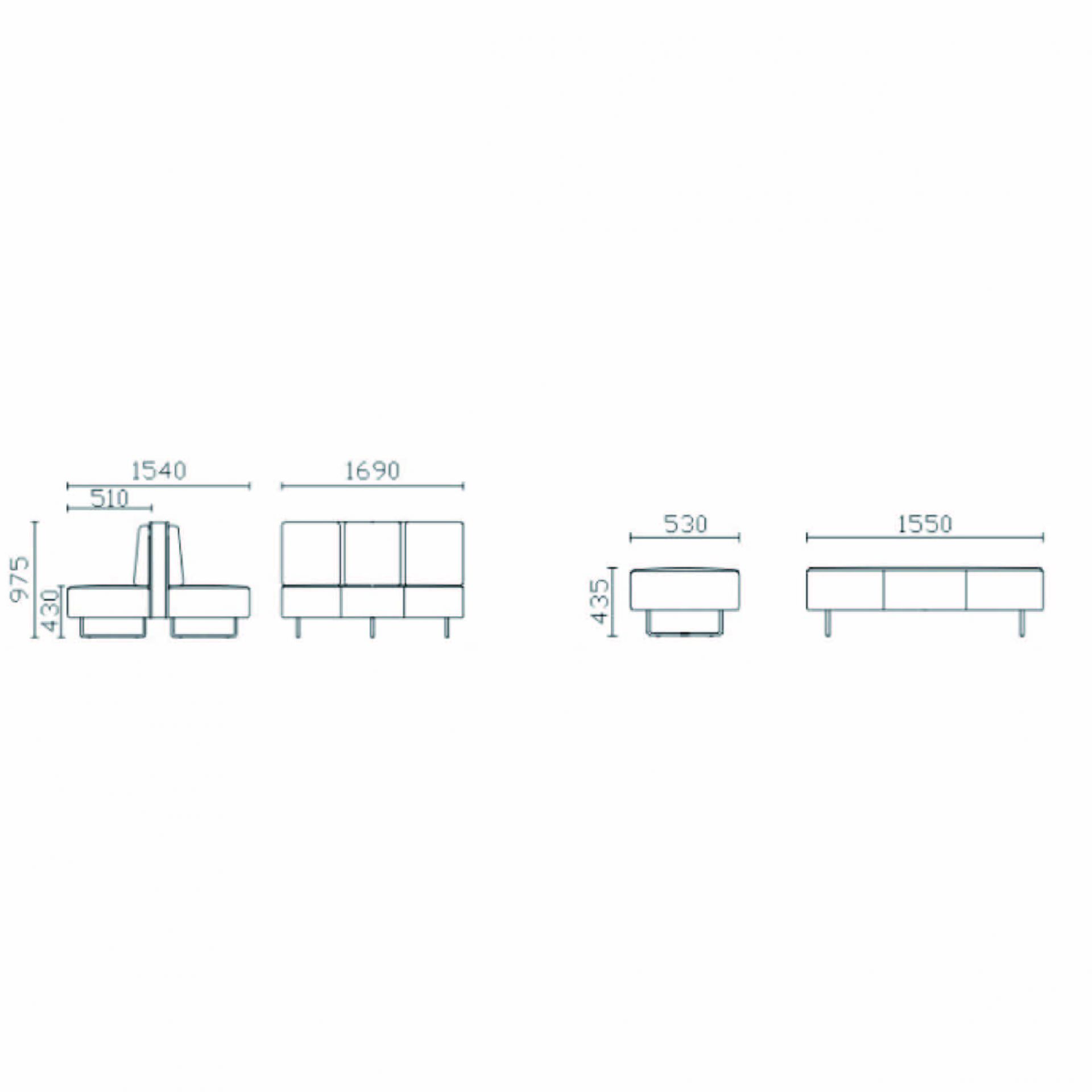 三人 1690*510*975 mm
